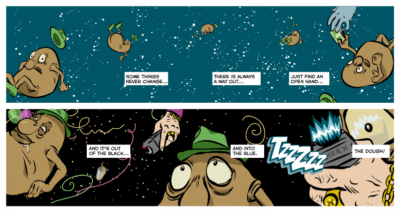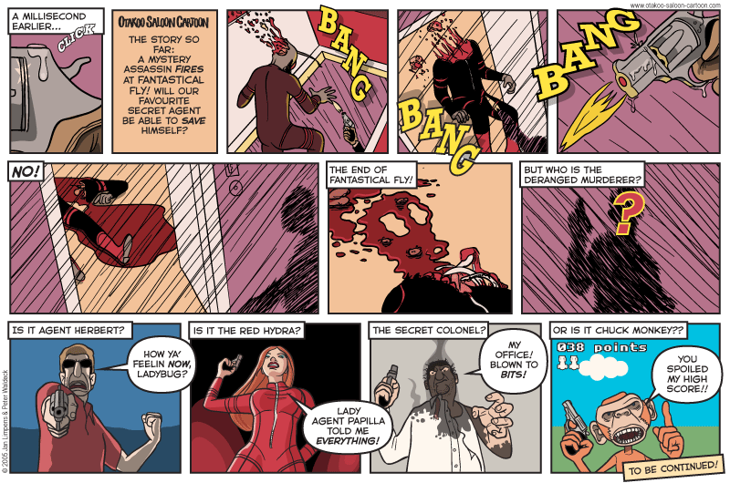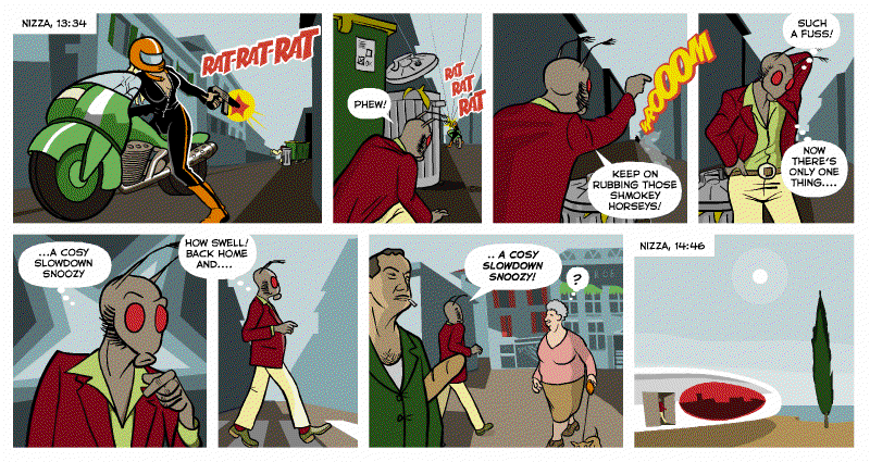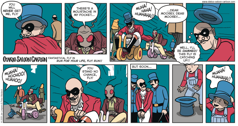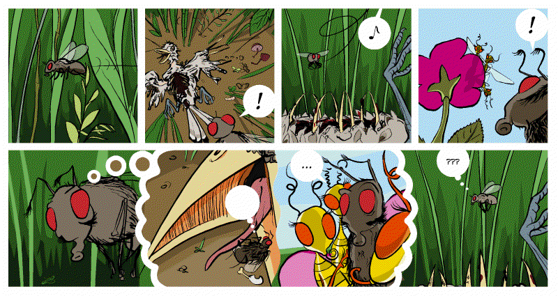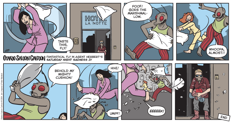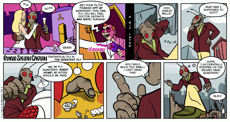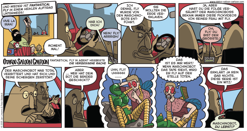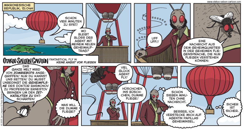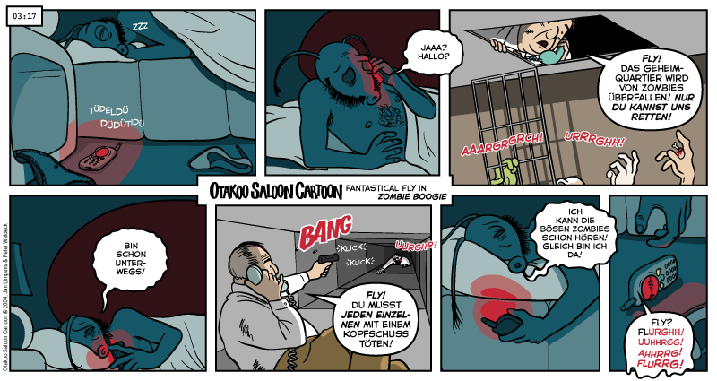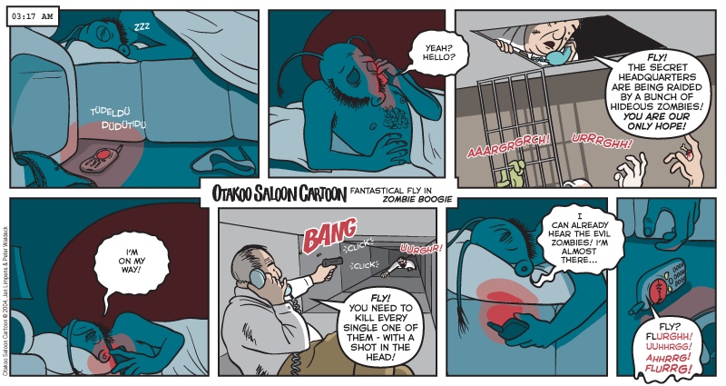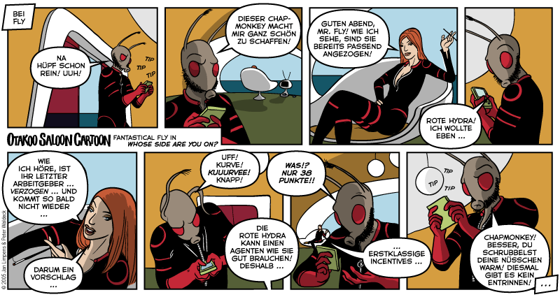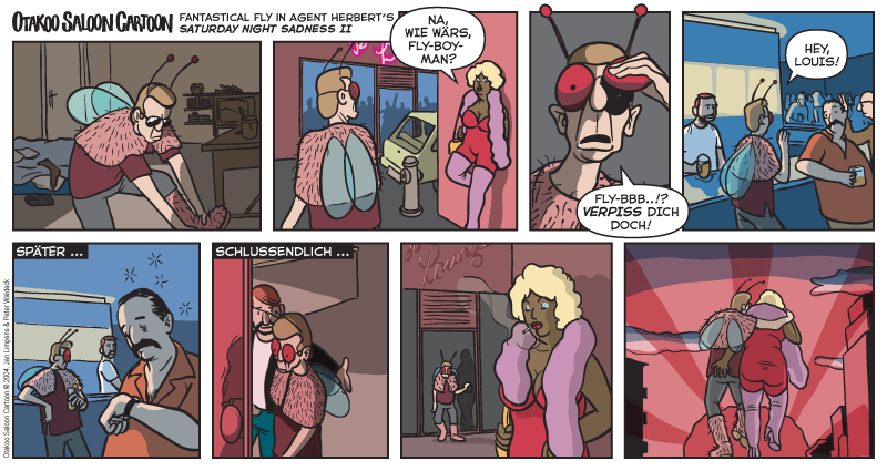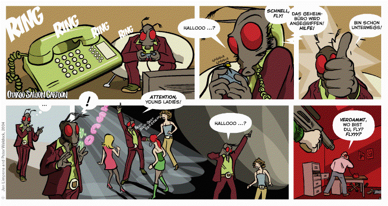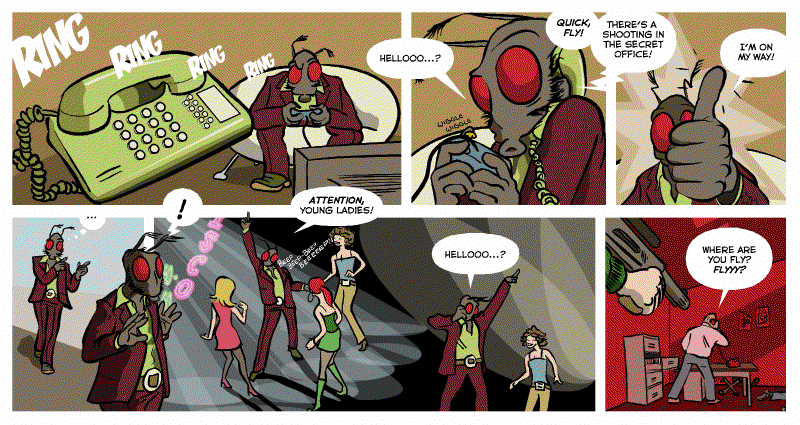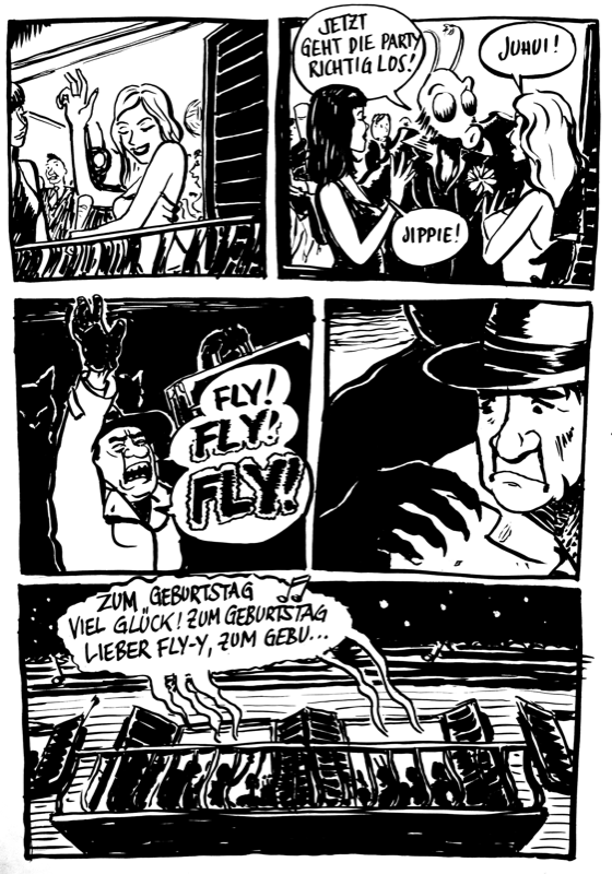 Trabalho colaborativo com Peter Waldeck; um drama de espionagem envolvendo o inimitável Fantastical Fly do Otakoo Cartoon Saloon. Publicado na revista de quadrinhos austríaca “Tisch 14/Nt. 5”.