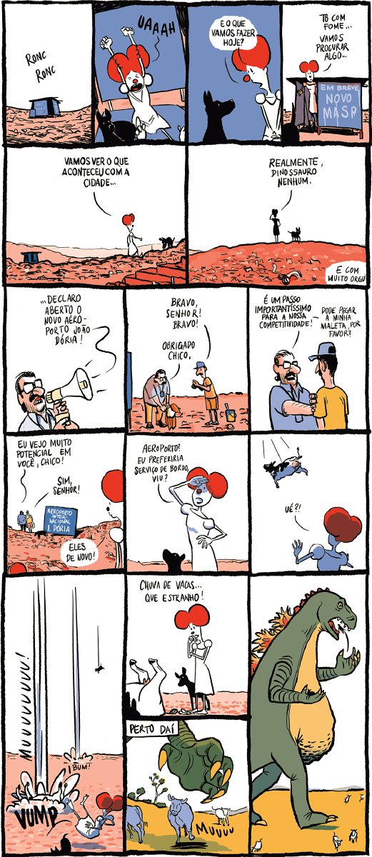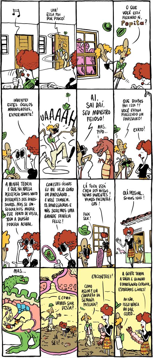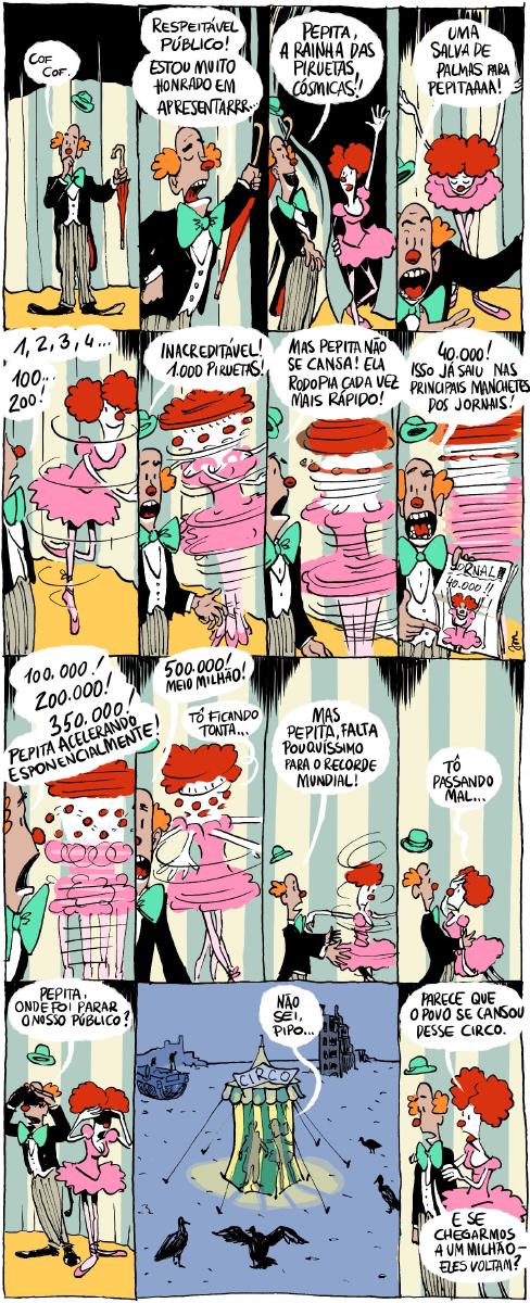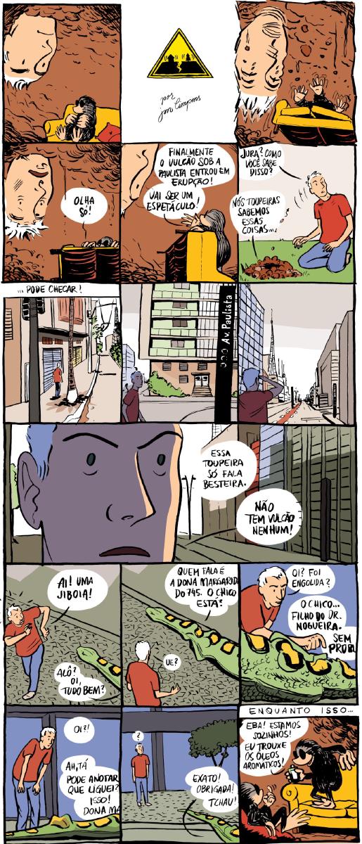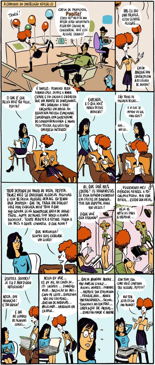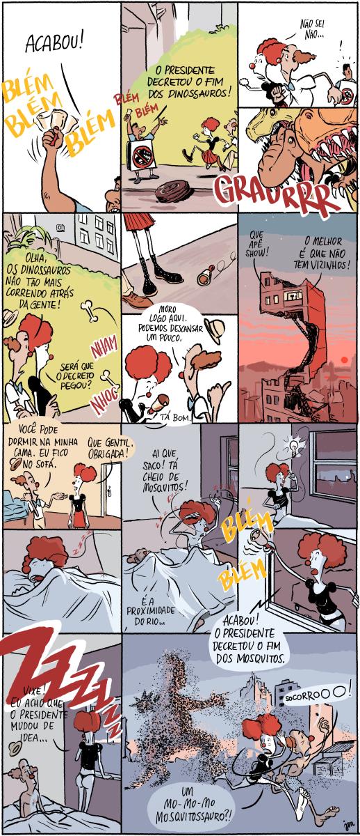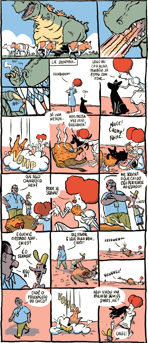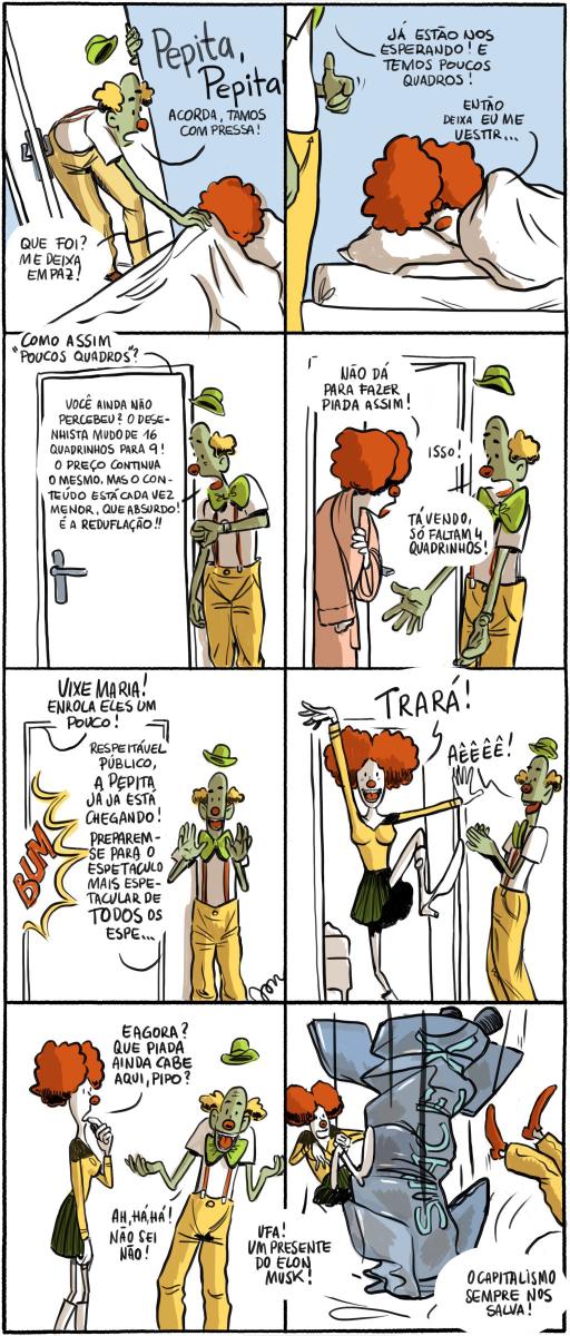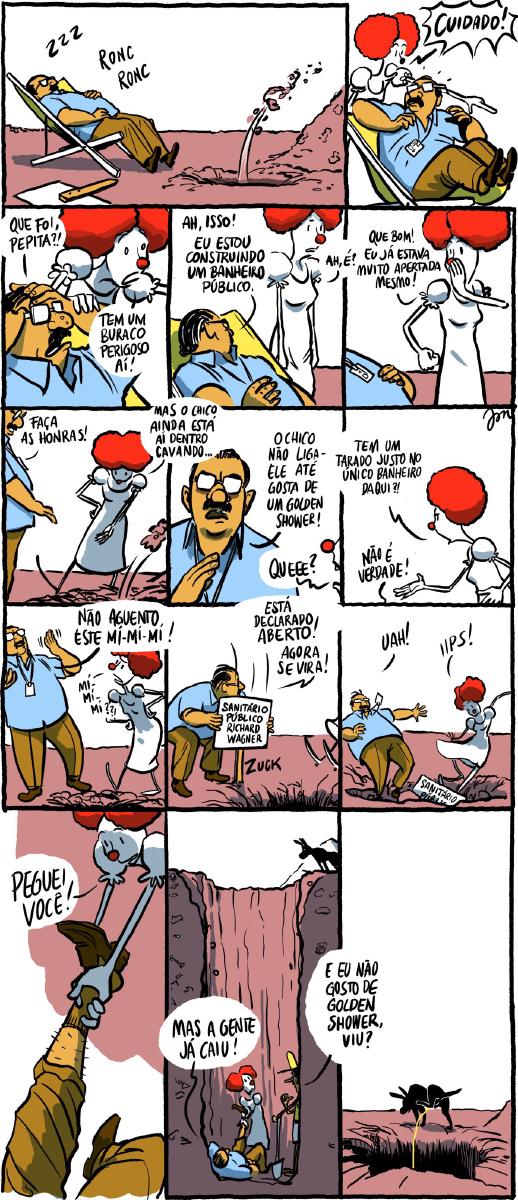 Aos domingos, a Folha dedica todo o espaço das tirinhas a um artista. Compartilho aqui as minhas contribuições, retratando a atual situação brasileira.