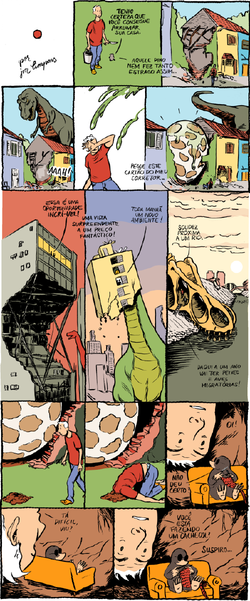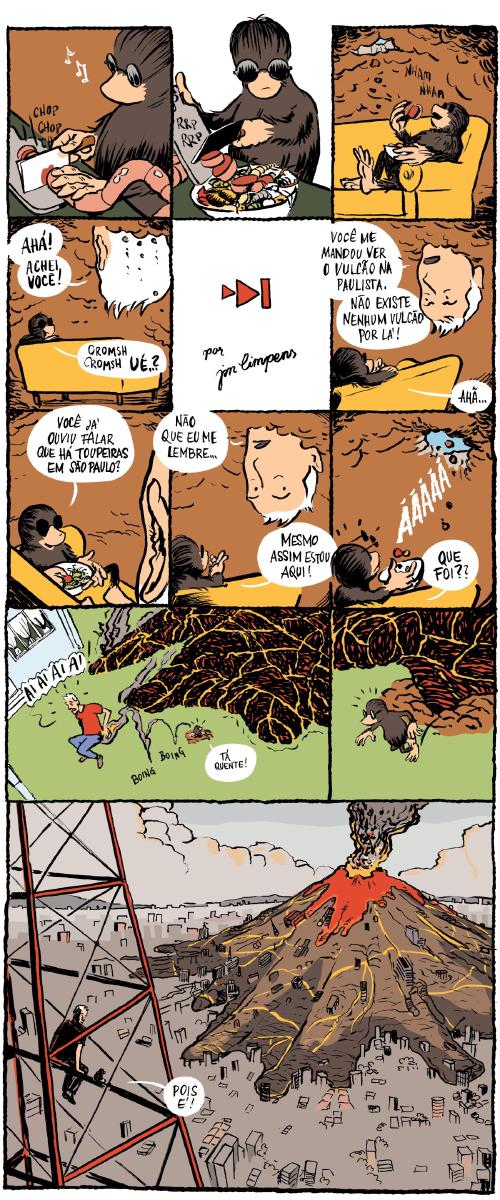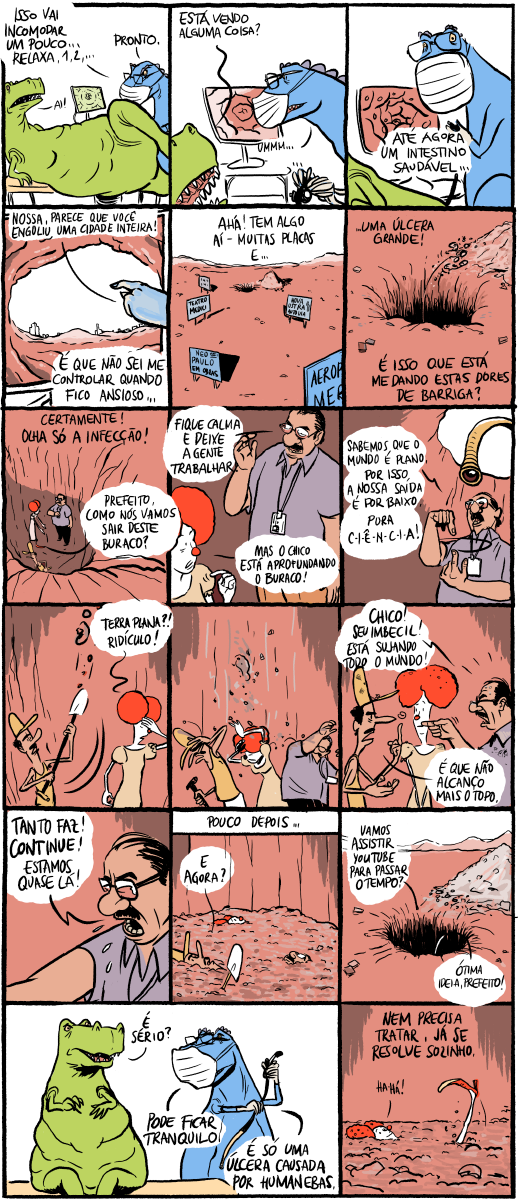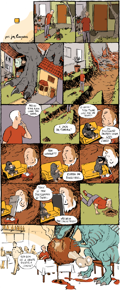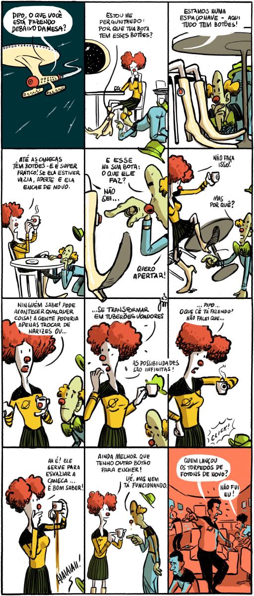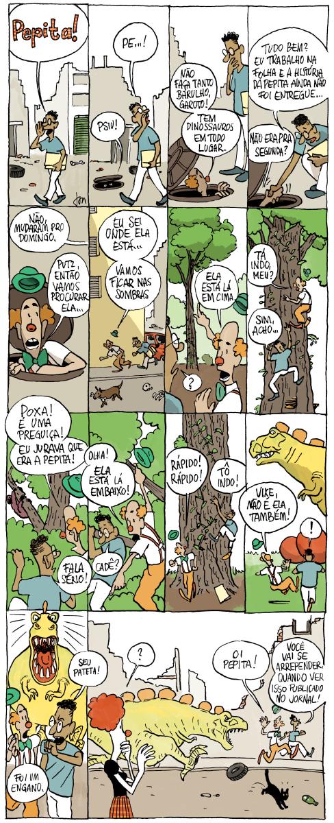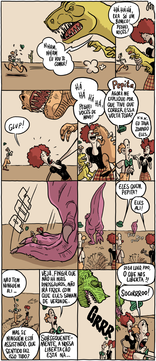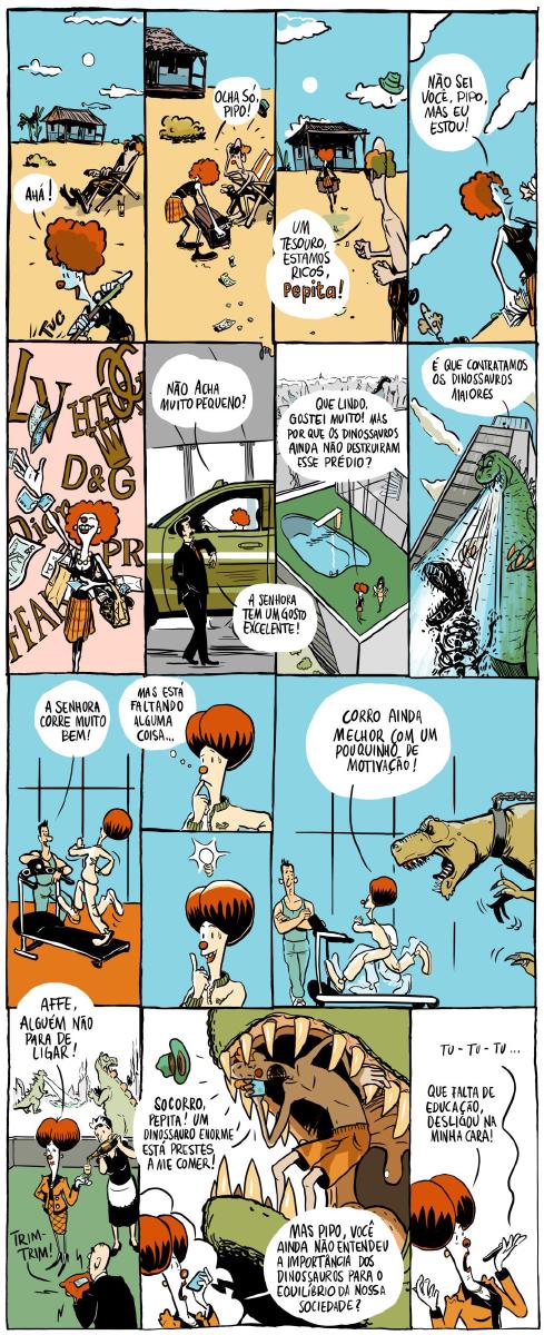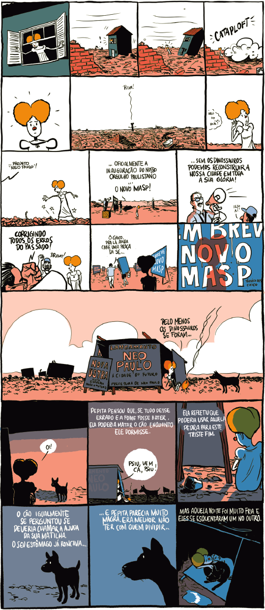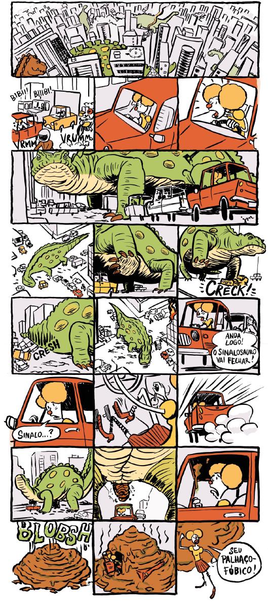 Aos domingos, a Folha dedica todo o espaço das tirinhas a um artista. Compartilho aqui as minhas contribuições, retratando a atual situação brasileira.